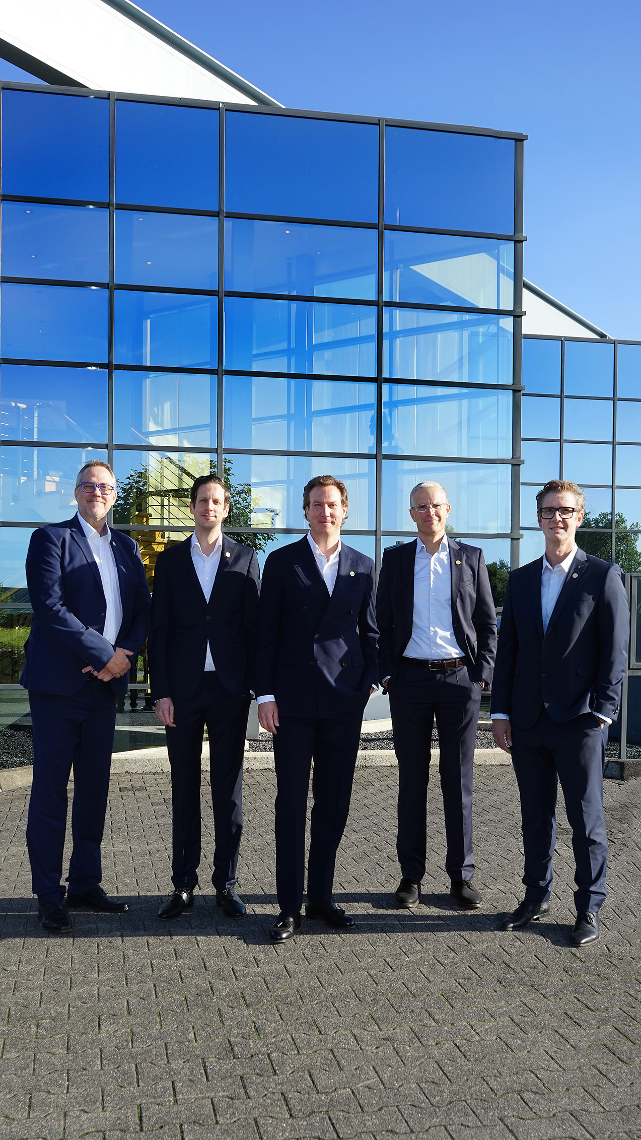 Foto von links: Jörn Brosowsky (Sales Director), Peer Großekämper (IT & Warehouse), Henrik Großekämper (CEO/Managing Director), Ingo Brake (Commercial Director) und Christian Henrichsmeier (CTO/Sustainability). Gemeinsam stehen sie bei groku für Wachstum, Innovation und den Anspruch: the better bucket.