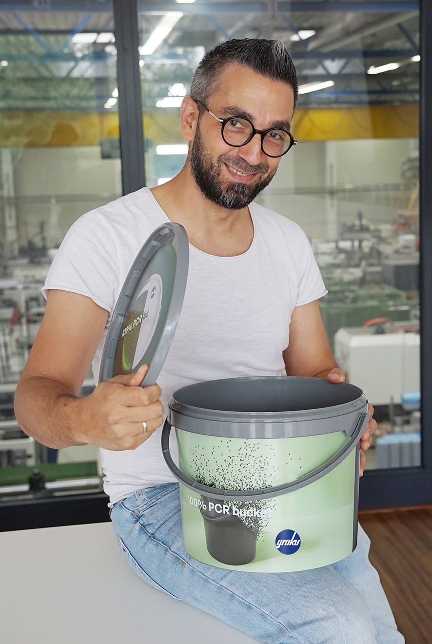Bereits seit 2011 produziert groku für diesen Kunden im DIY-Segment Verpackungseimer aus 100 % Recyclingmaterial – in Gebinden von 1 bis 12,5 Litern. Die Dekoration erfolgt per In-Mould-Labeling.